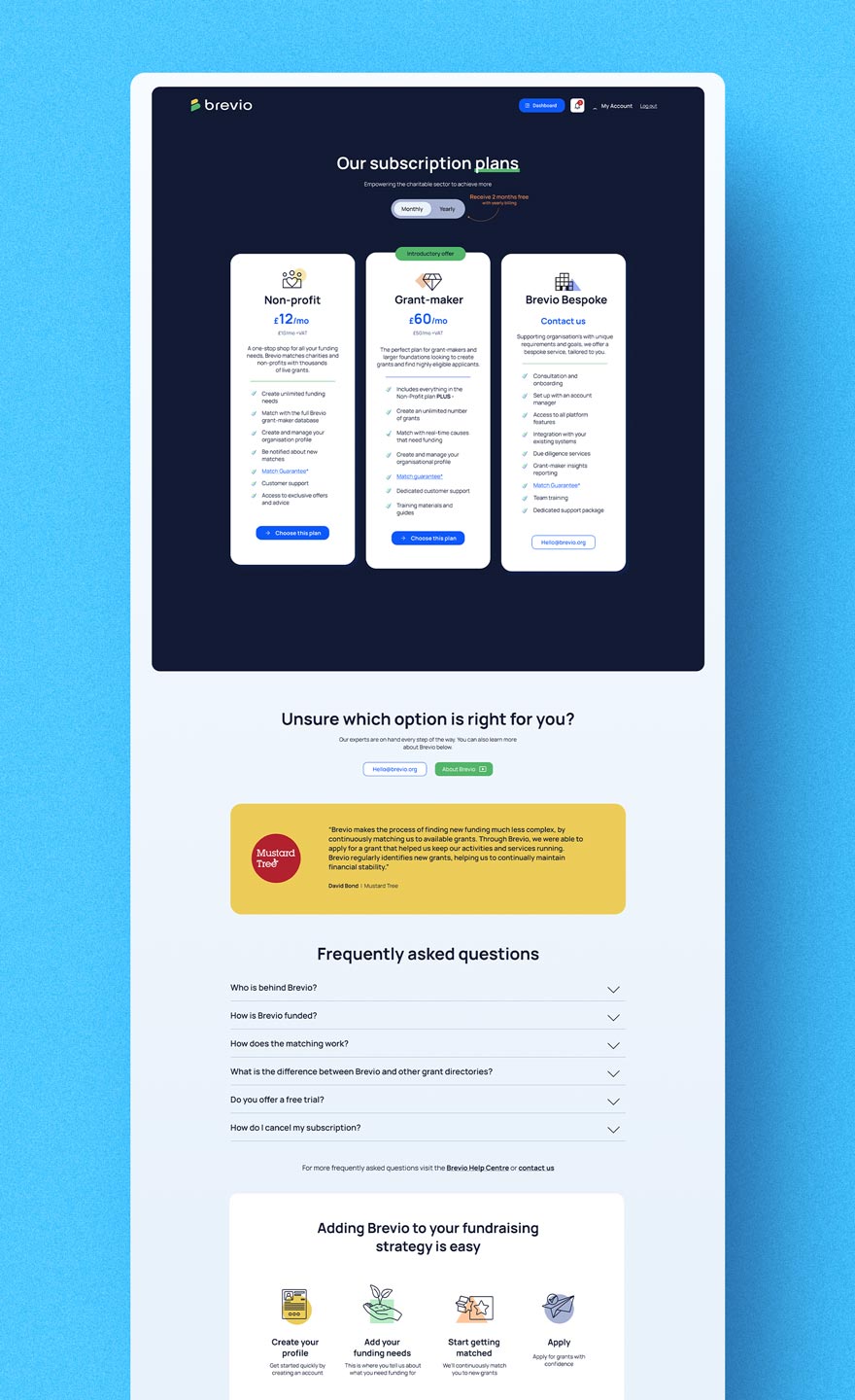 Brevio is a not-for-profit UK Social Enterprise and B-corp certified organisation, with a primary goal of serving the greater good. The software was developed to match Non-Profit organisations with Grantmakers based on their unique needs, with the aim of saving the sector £1.2 billion in lost time.