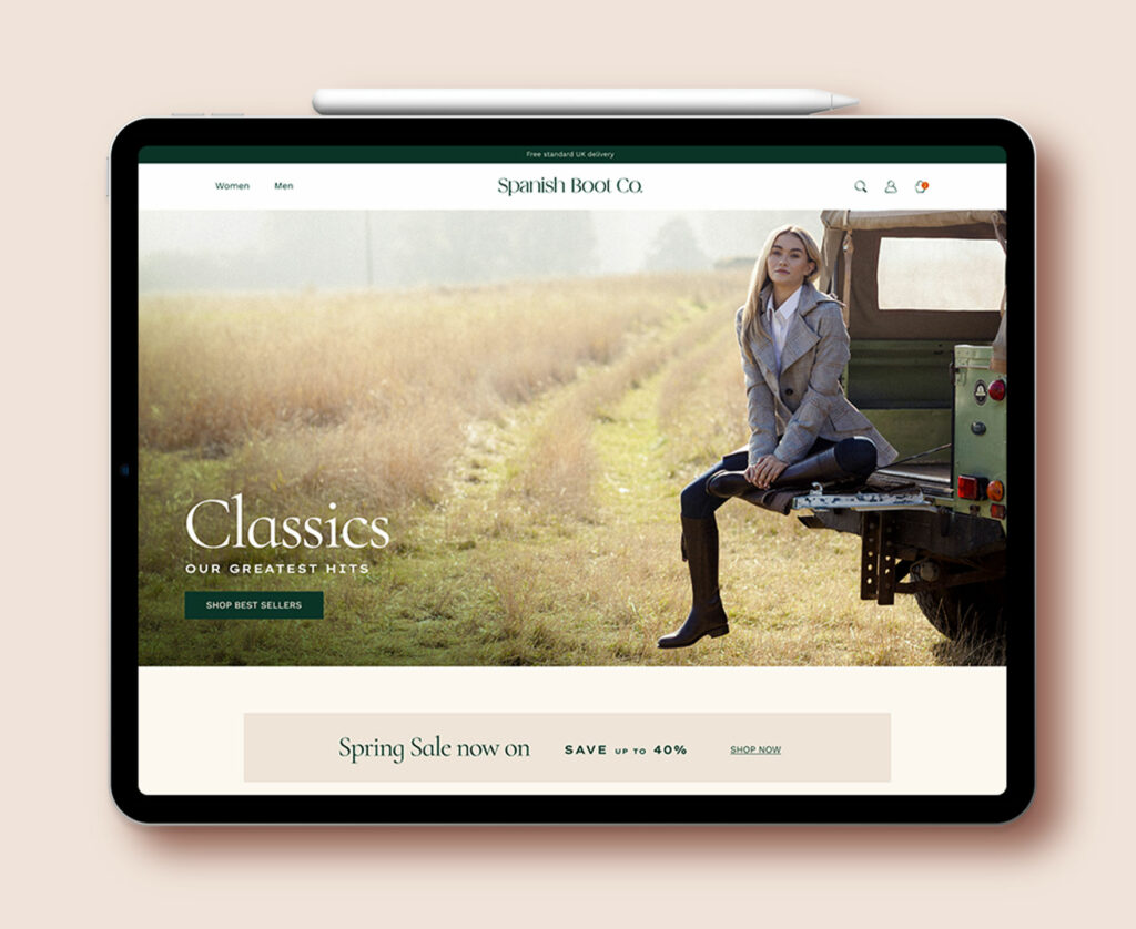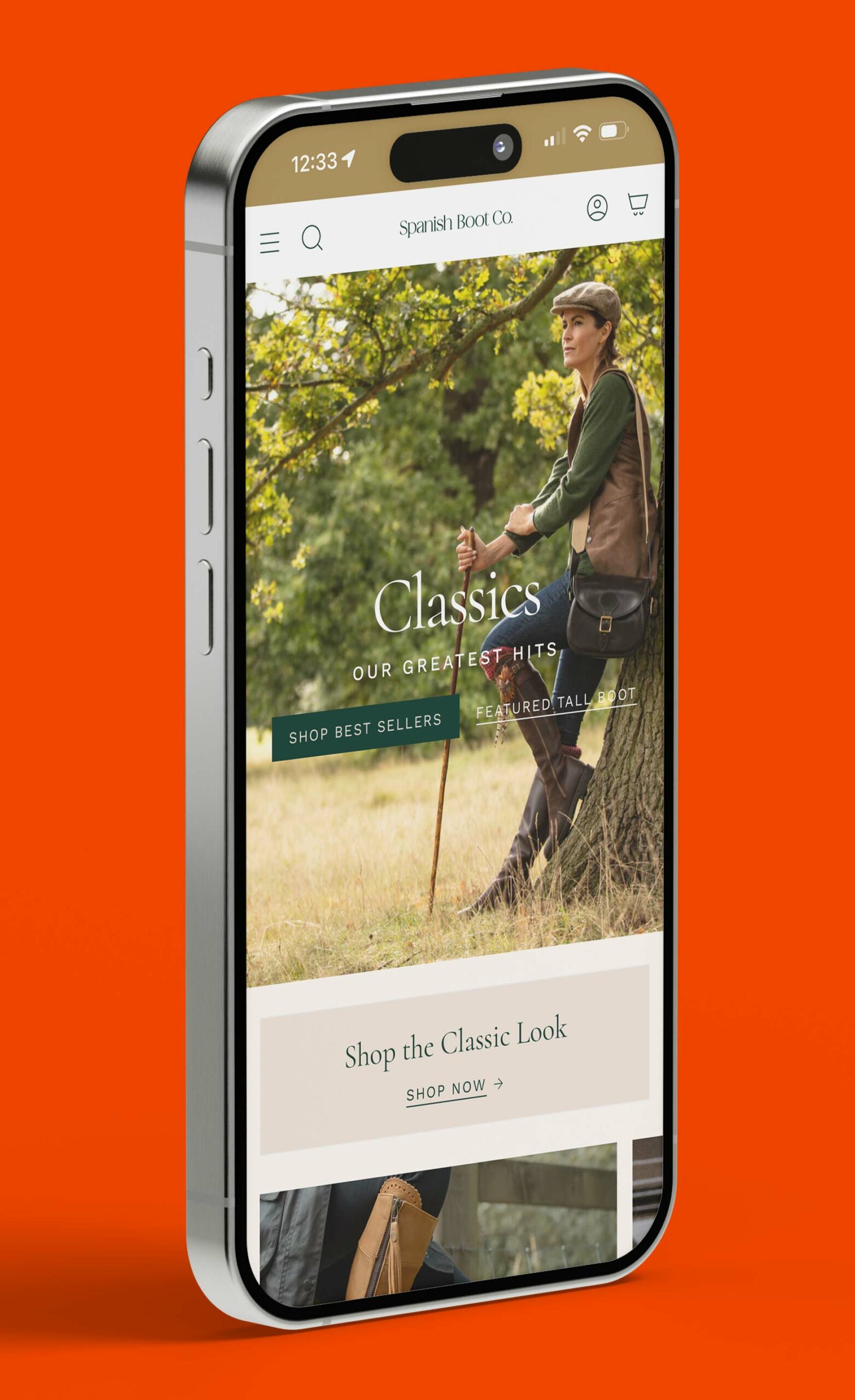 Our visual identity for Spanish Boot Co. is now showcased on their updated e-commerce website. We implemented a clean, decisive design with improved navigation and filtering for enhanced user experience. The site is fully responsive to accommodate the growing mobile traffic.